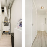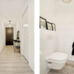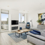 The spacious hallway leads to the bright and very generous living room, where large windows and doors provide plenty of natural light and direct access to the balcony. The living area offers numerous layout possibilities and is finished with a sleek PVC floor with underfloor heating and cooling.