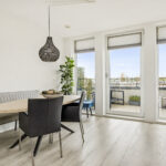 On the west side of the apartment is the spacious balcony, ideally positioned for enjoying the afternoon and evening sun. From here, you have a beautiful view over the canal and the surrounding greenery.