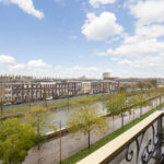 Aan de westzijde ligt het ruime balkon, ideaal voor de middag- en avondzon. Hier geniet je van een fraai uitzicht over het water van de singel en het groen in de omgeving.