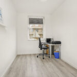 Het appartement telt twee comfortabele slaapkamers. De master bedroom ligt aan de oostzijde en kijkt uit op de mooie gemeenschappelijke binnentuin – een rustige plek waar je ’s ochtends van de zon kunt genieten. Ook de tweede slaapkamer heeft zicht op deze binnentuin en is daardoor perfect te gebruiken als logeerkamer, werkkamer of kinderkamer.