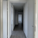 De entree van het appartement leidt naar een ruime hal die toegang biedt tot de verschillende ruimtes. De royale woonkamer heeft dankzij de grote ramen veel natuurlijk licht, wat zorgt voor een warme en open sfeer. De halfopen keuken in mat wit met zwarte handgrepen is voorzien van moderne apparatuur zoals een inductiekookplaat, afzuigkap en een oven. Via de keuken kom je in een praktische berging die ideaal is voor extra opslag en waar de aansluiting voor de wasmachine zich bevindt. De serre, bereikbaar via schuifdeuren, biedt een extra ruimte die perfect is voor ontspanning of als eetkamer.