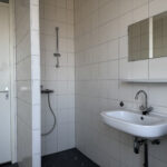 - Volledig betegelde badkamer met inloopdouche en dubbele wastafel.