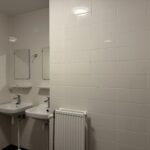 - Volledig betegelde badkamer met inloopdouche en dubbele wastafel.