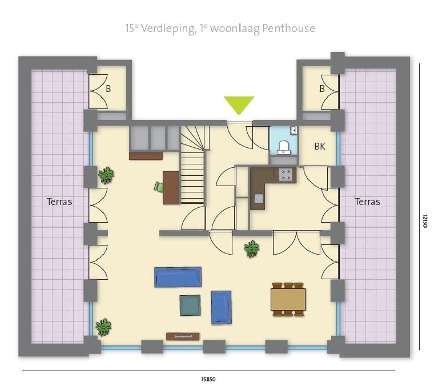 - Twee grote dakterrassen (zuidoost en noordwest).