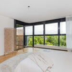 De woonkamer is aan de voorzijde gesitueerd en is voorzien van grote raampartijen, waardoor u een prachtig uitzicht heeft op het Griftpark. Aansluitend aan de woonkamer vindt u een halfopen, ruime en moderne keuken (2023) voorzien van een inductiekookplaat, afzuigkap, vaatwasser, combi-oven en een koel-vriescombinatie. Vanuit de woonkamer heeft u toegang tot het eerste balkon.