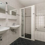• De badkamer, uitgerust met een ligbad, aparte douche en dubbele wastafel, biedt alles wat je nodig hebt voor je dagelijkse routine.
