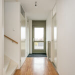 Via de entree met brievenbussen en bellentableau bereik je de lift die alle verdiepingen verbindt, van de parkeerkelder tot de derde etage. Daarnaast is er een trappenhuis aanwezig voor wie liever de trap neemt.