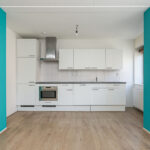 - Keuken in rechte opstelling met inbouwapparatuur.