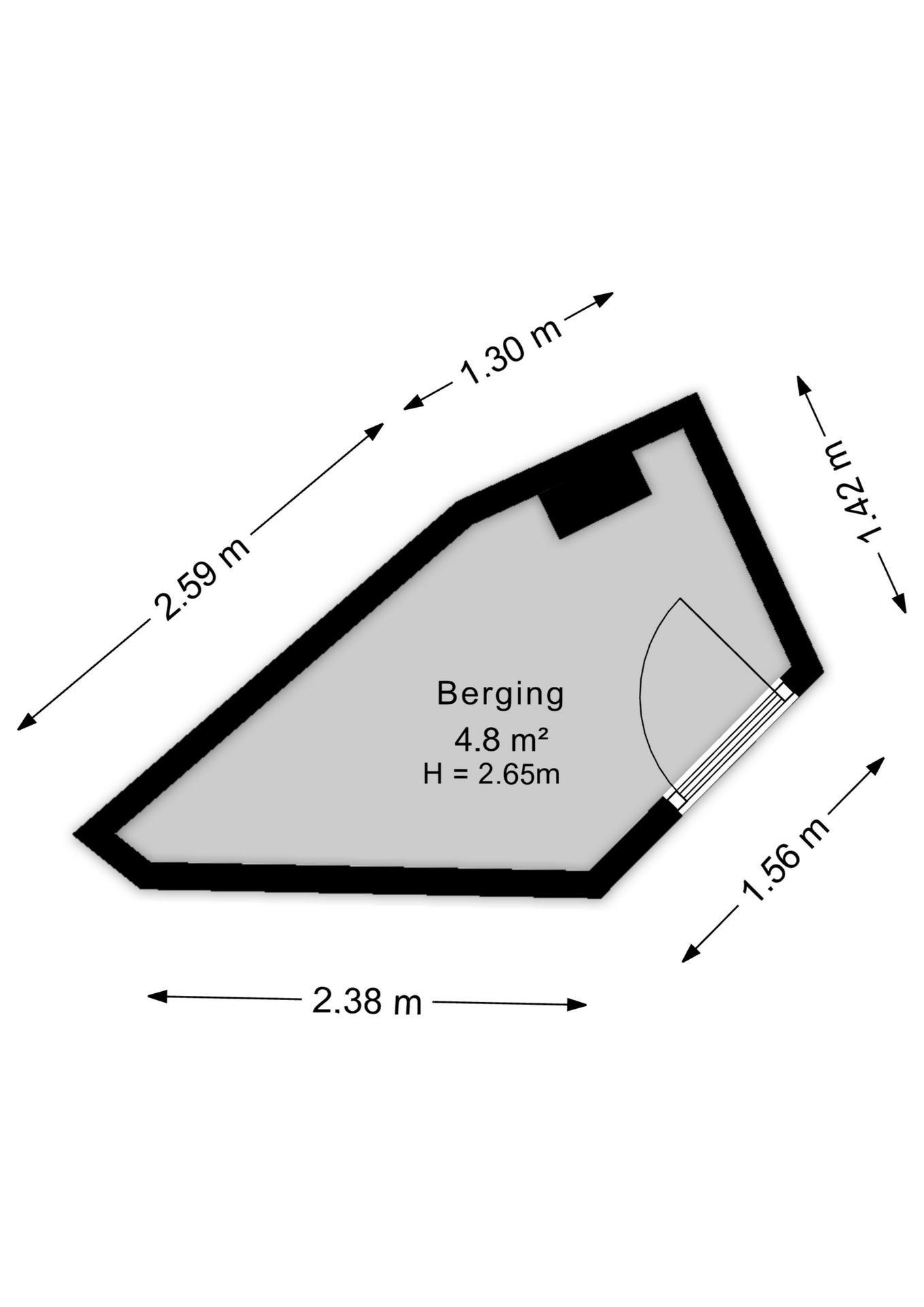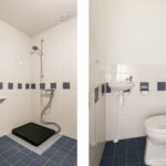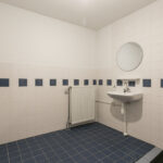 De slaapkamer is van een goed formaat en voorzien van HR++ beglazing. De badkamer is afgewerkt met een blauwe vloer en ingericht met een wastafel, douche en wasmachineaansluiting. Daarnaast is er een separate toiletruimte met blauwe tegels, een fontein en een staand toilet. De inpandige berging biedt praktische extra opslagruimte en hier bevinden zich ook de stoppenkast en de mechanische ventilatiebox.