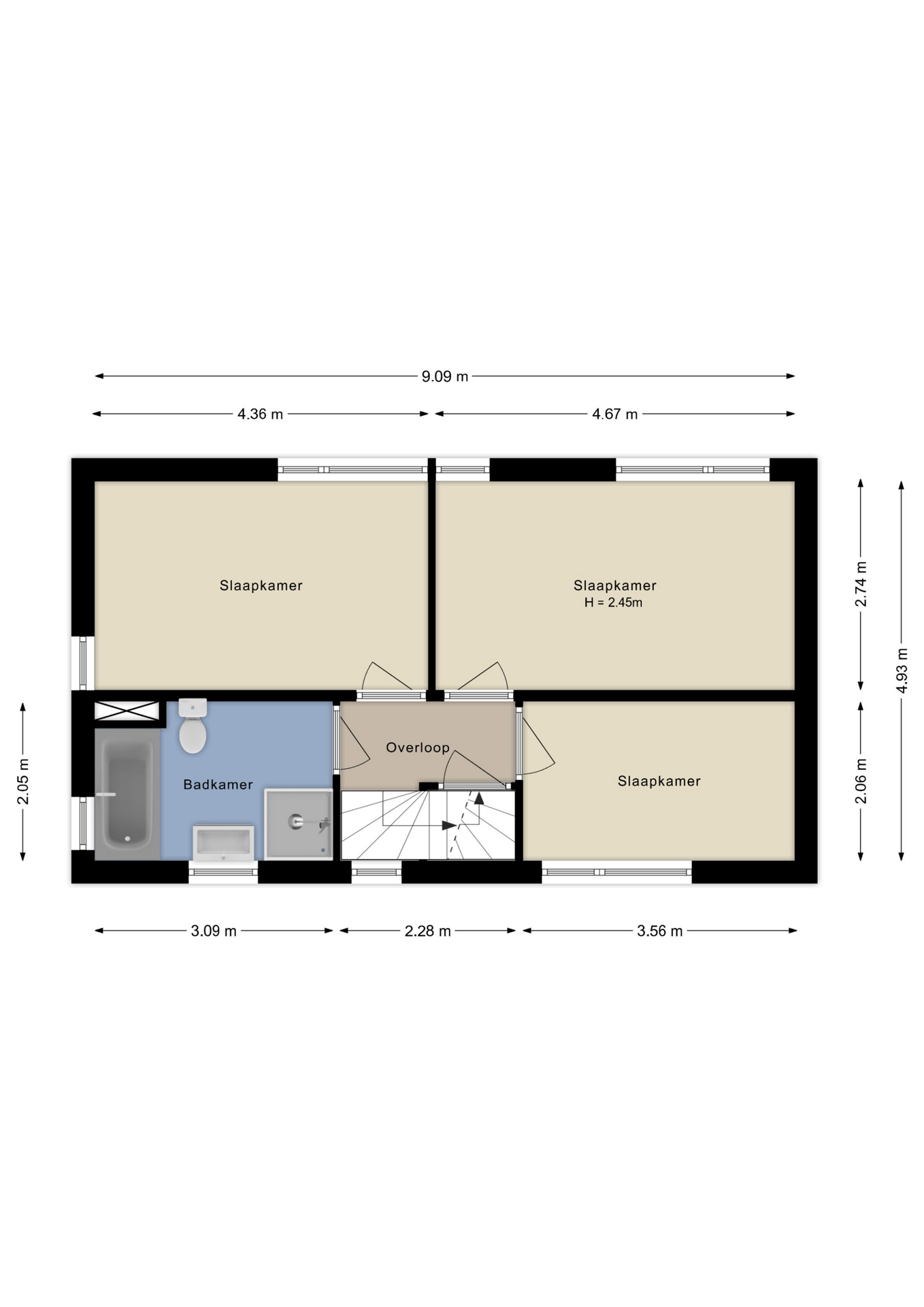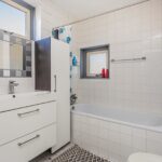 Vanaf de overloop bereikt u via een vaste trap de tweede verdieping. Op deze etage bevinden zich drie slaapkamers van circa 13 m², 12 m² en 7 m². De badkamer is uitgerust met een ligbad, aparte douche, tweede toilet en wastafelmeubel.