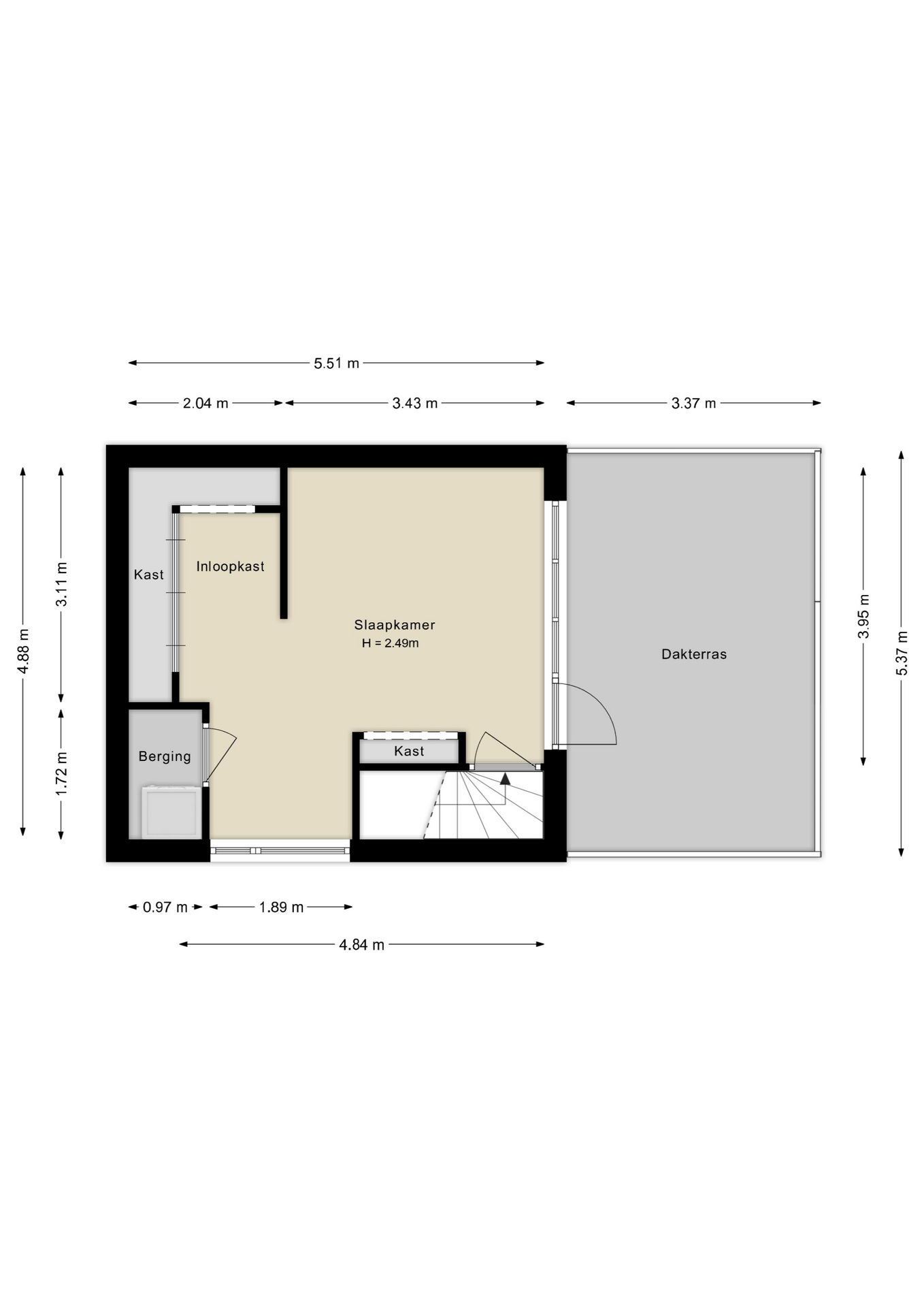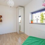 De tweede verdieping biedt een royale en lichte slaapkamer van circa 27 m² met een vaste kastenwand. Hier bevinden zich tevens de aansluitingen voor wasmachine en droger. Vanuit deze kamer heeft u toegang tot een zonnig dakterras van circa 16 m², dat eveneens veel privacy biedt.