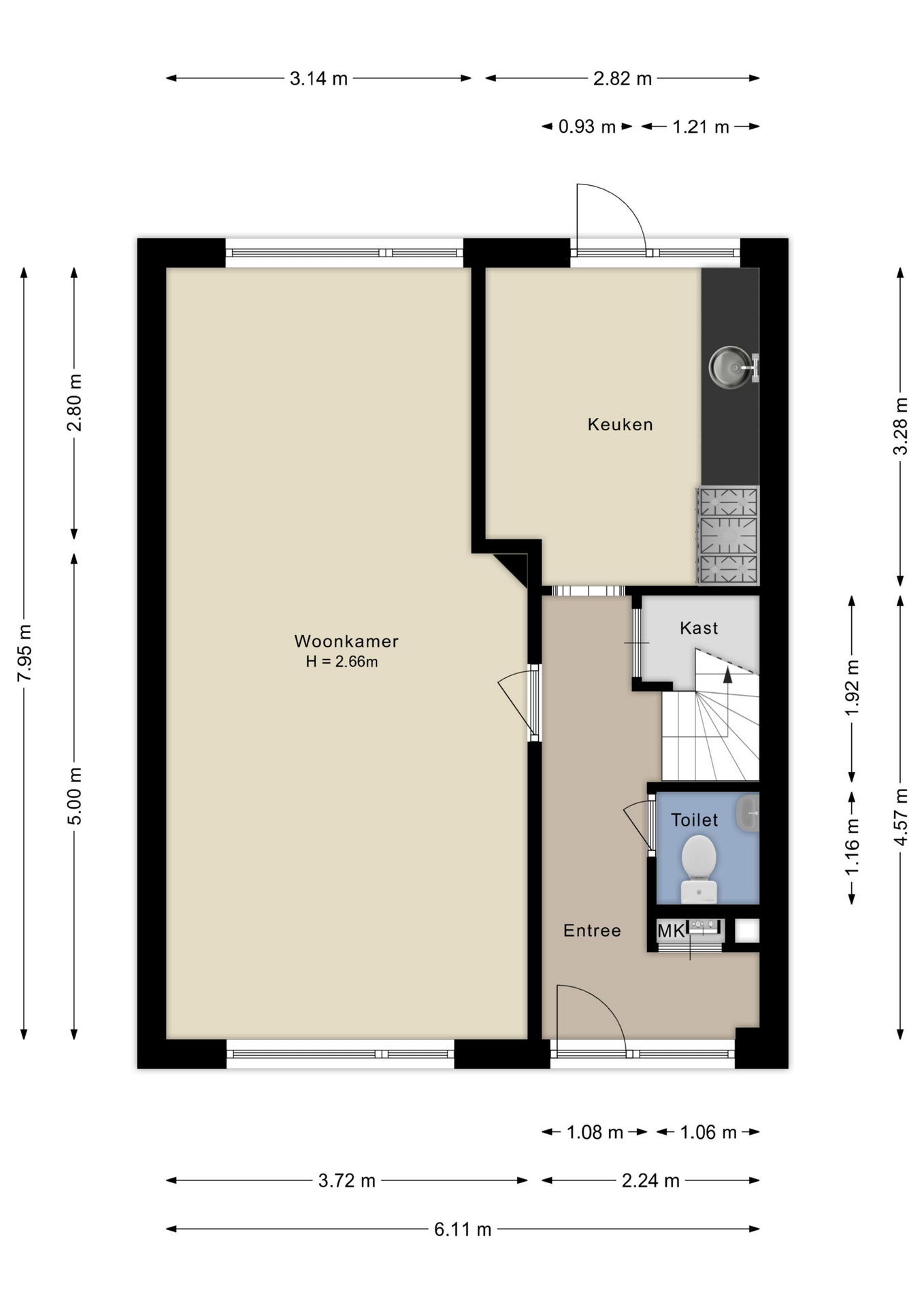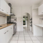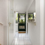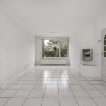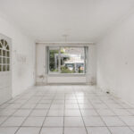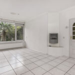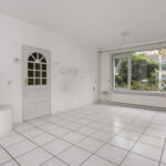 De lichte woonkamer nodigt uit tot ontspanning en biedt alle ruimte voor een familie om te groeien. De keuken heeft een eenvoudig keukenblok en geeft toegang tot de achtertuin.