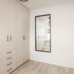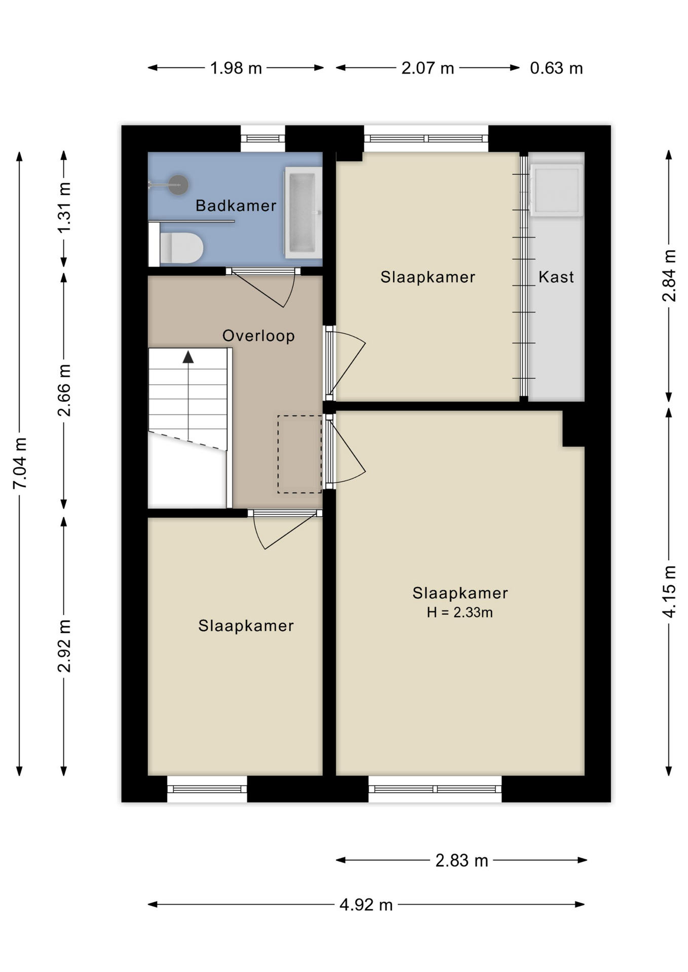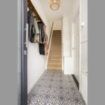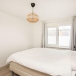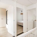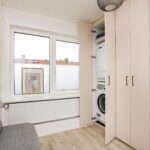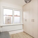 Overloop. Er is een fraaie, vernieuwde badkamer met inloopdouche, wastafelmeubel en hangend toilet. Ook zijn er 3 ruime slaapkamers, waarbij 1 slaapkamer is voorzien van een inbouwkast (ter overname) met waterafvoer voor wasmachine en droger. Op deze verdieping bevindt zich ook een rolluik (ter overname) op zonne-energie.