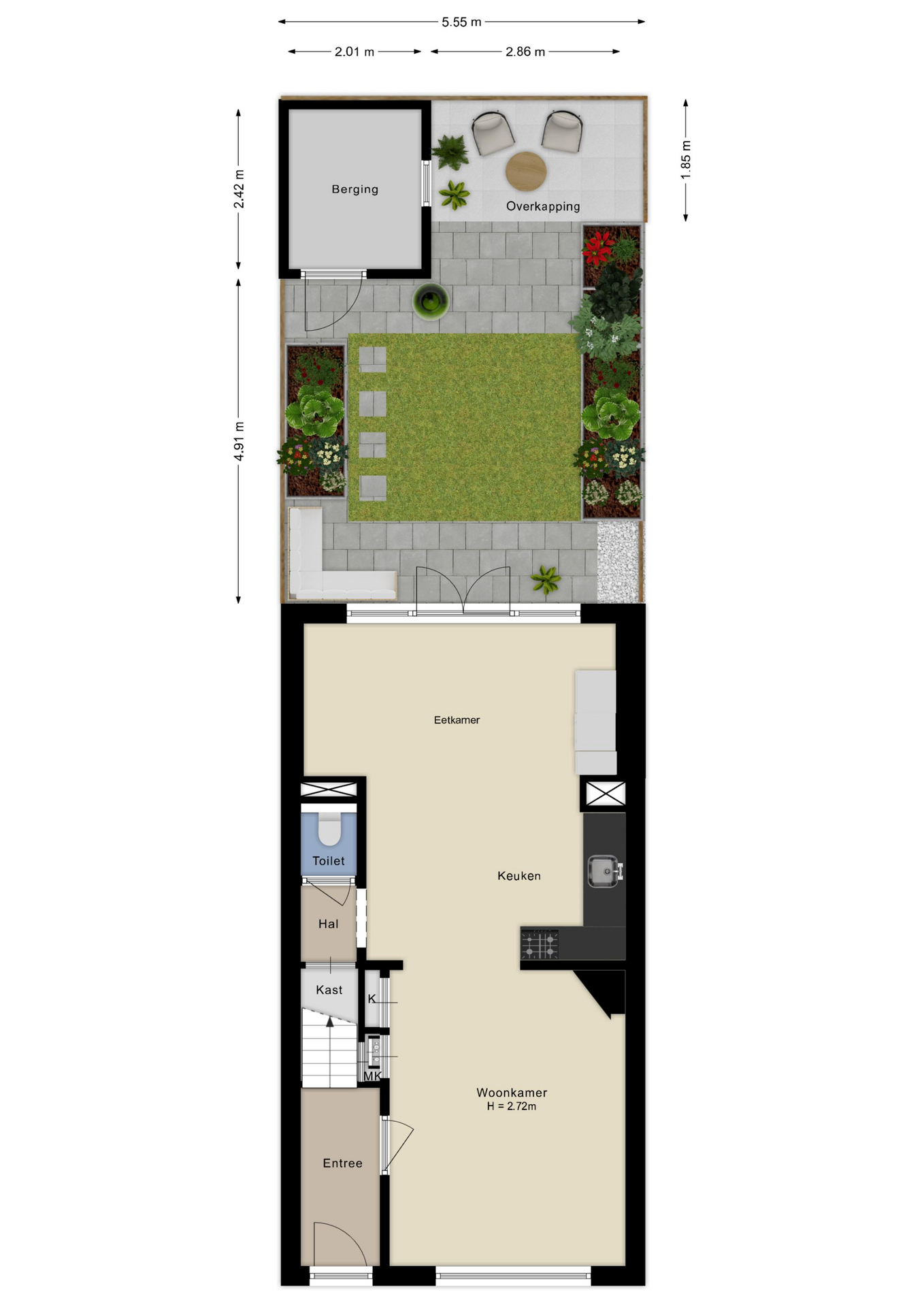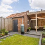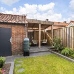 Via de openslaande deuren kom je in de mooi aangelegde, zonnige achtertuin op het zuidoosten met berging, overkapping en achterom. Vanuit de keuken kom je via een hal bij het toilet en een vaste kast.
