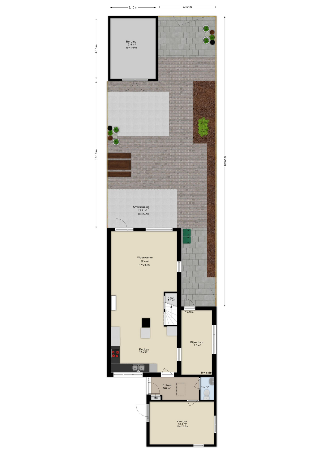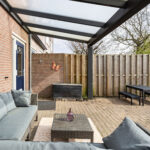 De benedenverdieping leidt naar een uitnodigende achtertuin. Hier geniet je van het zuidoostelijke zonnetje bij een ontbijtje buiten of tijdens een avond bbq met vrienden. Met een perceeloppervlakte van 202 vierkante meter heb je ruimte zat om te tuinieren of voor de kinderen om te ravotten.