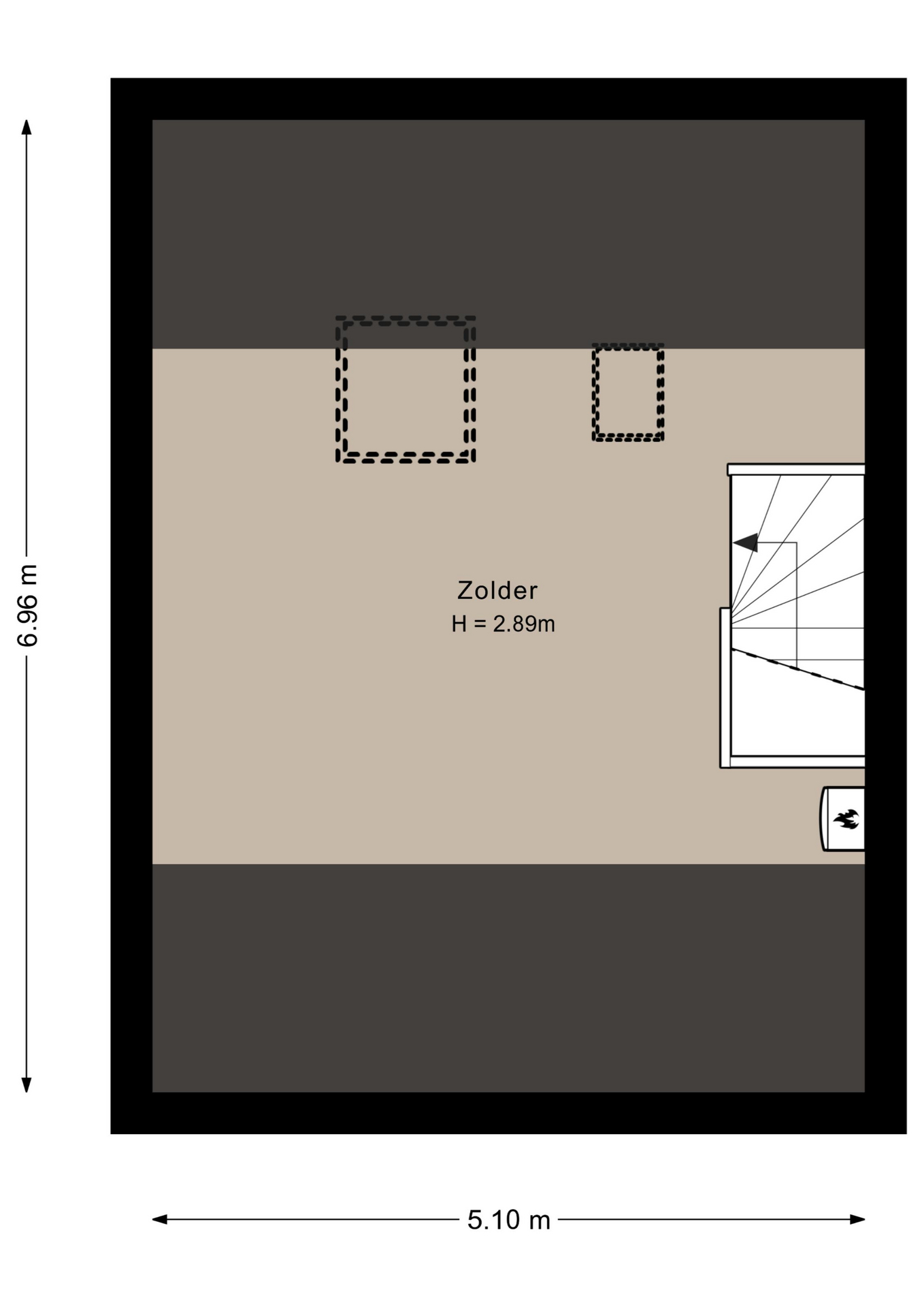 De zolder is bereikbaar via een vaste trap en biedt volop mogelijkheden om de ruimte naar eigen wens in te richten. Of je nu een extra slaapkamer, werkkamer of hobbyruimte wilt creëren, de zolder biedt een open canvas om je creativiteit de vrije loop te laten. De ruimte is voorzien van twee dakramen, die zorgen voor veel natuurlijk licht. Ook is er een opstelplaats voor de cv-ketel.