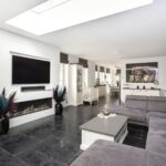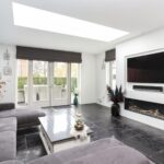 •	Living met moderne schouw en gashaard