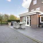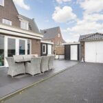 De tuin is gelegen aan noordoostzijde, zodat je er al vroeg op de dag lekker in de zon kunt zitten. In 2020 werd de buitenruimte opnieuw aangelegd, waarbij deze met grote terrastegels onderhoudsvrij is gemaakt. Er is ruimte voor een groot terras en op de oprit, voorzien van een afsluitbaar hek, is parkeergelegenheid voor meerdere auto’s. In de tuin vind je twee bergingen en een riante garage. Via het pad naast de woning kun je doorlopen naar de voorzijde.