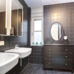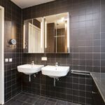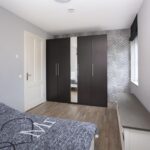 De overloop met grote inbouwkast geeft toegang tot drie riante slaapkamers. Allen zijn voorzien van een mooie vloer in houtlook, strak afgewerkte wanden, radiator en grote raampartijen met glasroeden. De grote slaapkamer aan de achterzijde is uitgerust met een kastenwand over de volledige breedte. De badkamer is geheel betegeld en voorzien van een raampartij en designradiator. Je vindt hier twee wastafels, spiegelkasten met verlichting, een wandcloset en een ruime inloopdouche.