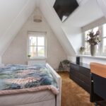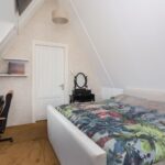 De voorzolder met nette vloerbedekking is opvallend ruim, en biedt plaats aan inbouwkasten met witgoedaansluitingen, mv- en cv-installatie. Het vertrek is zodanig ruim en licht dat gemakkelijk een extra slaap-, werk- of logeerkamer kan worden gerealiseerd. Aangrenzend bevindt zich de vierde slaapkamer. Deze is eveneens voorzien van vloerbedekking en voorzien van fraaie wandafwerking, een radiator, raampartij en dakkapel.