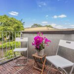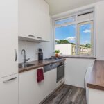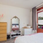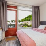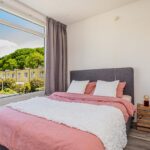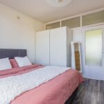 De slaapkamer, die direct grenst aan de woonkamer, geeft toegang tot een heerlijk privé balkon. Begin je dag ontspannen met een kopje koffie in de ochtendzon! In de slaapkamer is daarnaast een wastafelmeubel geplaatst.
