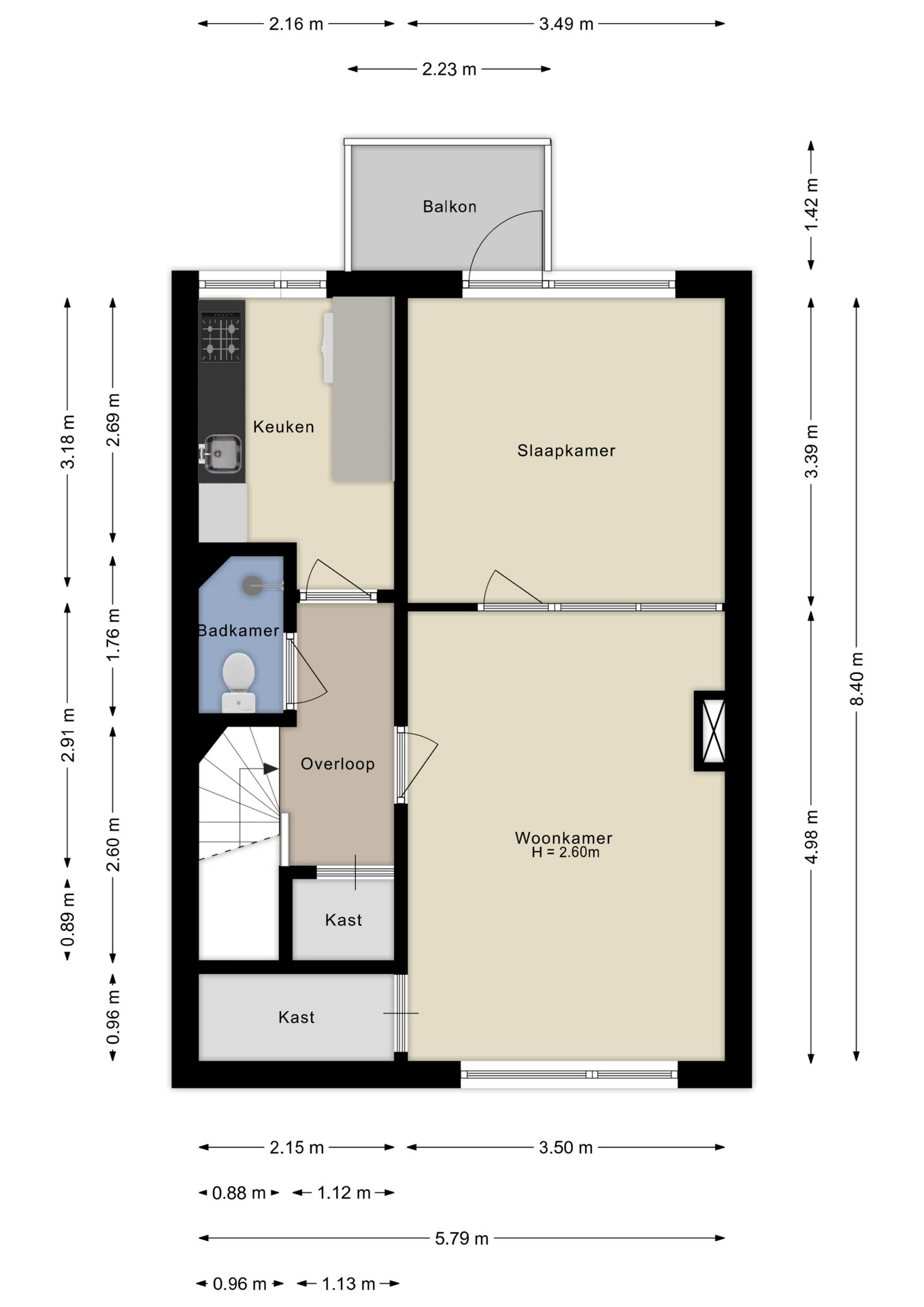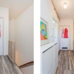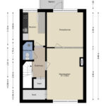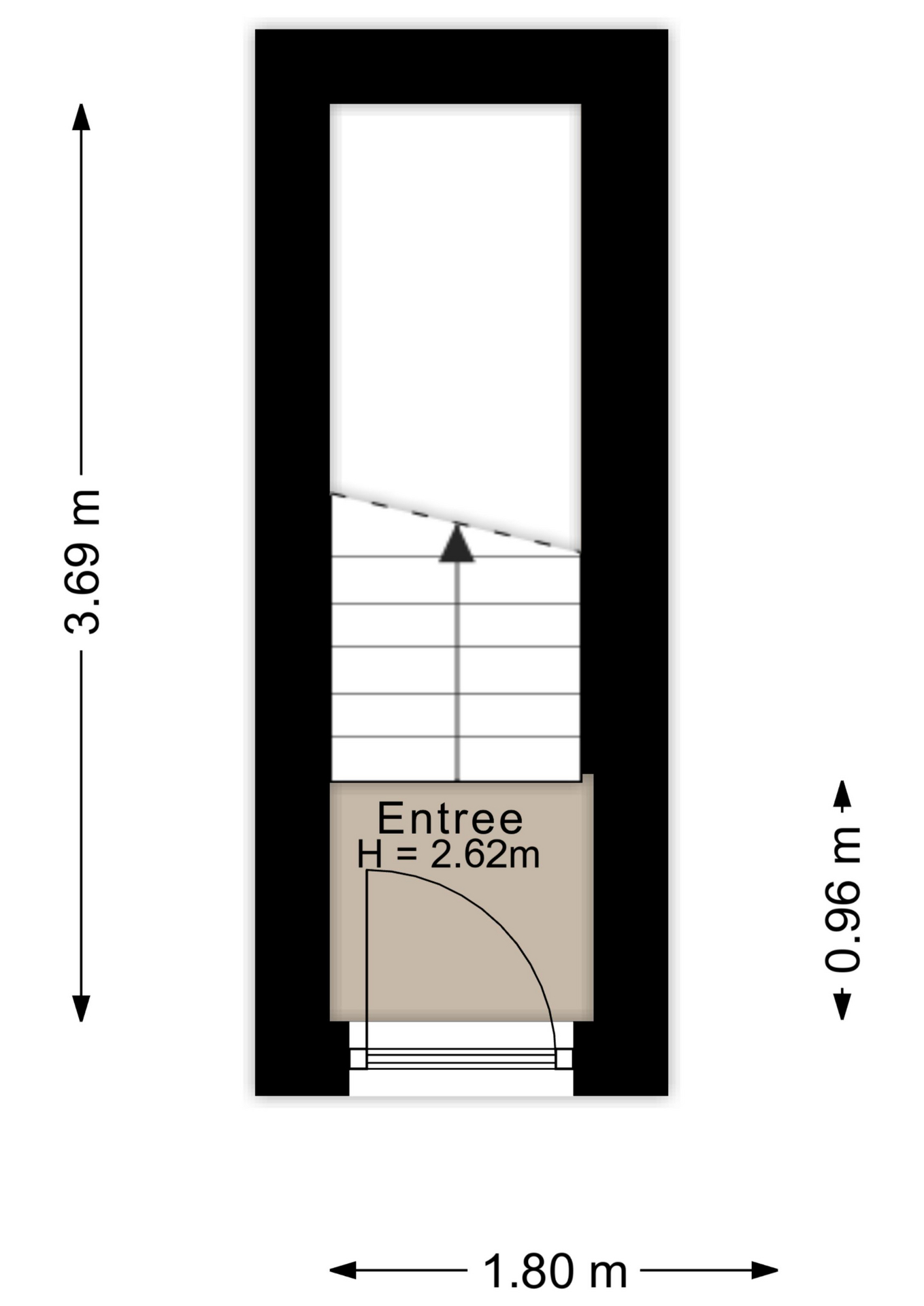 Je betreedt het appartement via een eigen voordeur. Vanuit de hal leidt een trap je naar de eerste verdieping. Onder de trap is ruimte voor een garderobe.