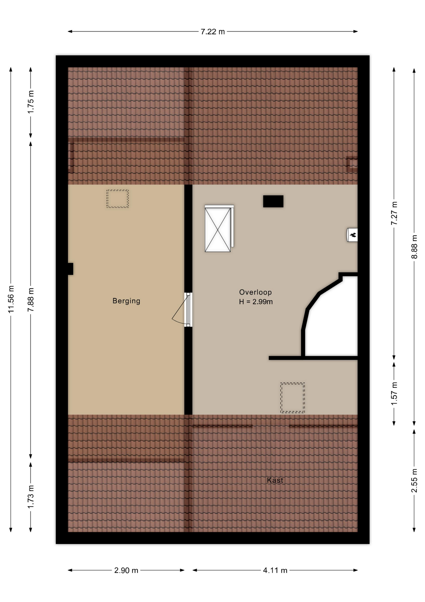 Via een vlizotrap in de hal bereik je de royale zolderverdieping. Deze grote open ruimte biedt tal van mogelijkheden, bijvoorbeeld als hobbyruimte, thuiskantoor of extra opslag. Hier bevindt zich tevens de opstelling van de cv-ketel.