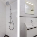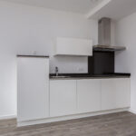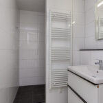 Binnenkomst via de entree naar een hal met meterkast. Vanuit hier is er toegang tot een ruime berging met aansluiting voor de wasmachine en opstelplaats voor de warmtepomp. De sfeervolle woon-/slaapkamer biedt dankzij het Franse balkon en de grote ramen veel natuurlijk licht. De moderne, open keuken is voorzien van diverse inbouwapparatuur, waaronder een inductiekookplaat, afzuigkap, koelkast met vriesvak en een vaatwasser. De nette badkamer beschikt over een inloopdouche. handdoekenradiator en een wastafel met bijpassend meubel. Daarnaast is er een apart toilet met fontein.