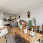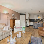 Bij binnenkomst in de ruime hal heeft u direct toegang tot alle vertrekken. De lichte woonkamer is ruim opgezet en voorzien van grote raampartijen, waardoor er veel natuurlijk licht binnenvalt. De woonkamer staat in open verbinding met de moderne keuken, waar voldoende ruimte is voor een gezellige zithoek en een ruime eettafel.