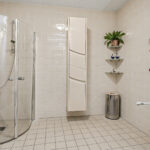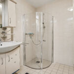 De badkamer is ruim en voorzien van een douche, wastafel met meubel en toilet. Dankzij de volledig gelijkvloerse indeling is dit appartement uitermate geschikt voor comfortabel wonen op elke leeftijd.