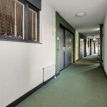 Centrale hal met receptie, brievenbussen, gezamenlijke ruimtes trappenhuis en lift