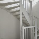 De overloop biedt toegang tot drie slaapkamers: twee aan de achterzijde en één aan de voorzijde. De recent vernieuwde, volledig betegelde badkamer is uitgerust met een douche, wastafel, tweede zwevend toilet en een raam voor natuurlijke ventilatie.