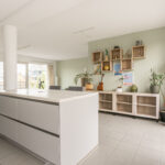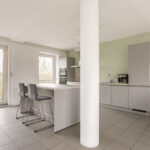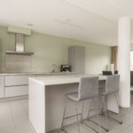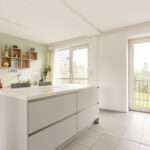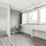 Hier bevinden zich de open keuken, eet- en woonkamer en een zonnig balkon op het zuiden met vaste zonwering. Het balkon biedt je een perfecte plek voor een ontspannend zitje terwijl je uitkijkt over het park. De woonkamer valt op door de grote ramen die veel natuurlijk licht binnenlaten. In de open keuken met kookeiland vind je alle inbouwapparatuur, zoals combi-ovens, inductiekookplaat, afzuigkap, vaatwasser, koelkast en vriezer – ideaal voor gezellige kookmomenten en een interactief samenzijn.