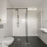 Op deze verdieping wachten twee ruime slaapkamers en een modern uitgeruste badkamer. Beide slaapkamers zijn licht en ruim dankzij de grote raampartijen, en de badkamer is volledig betegeld en voorzien van een inloopdouche, ligbad, wastafel en een extra toilet.