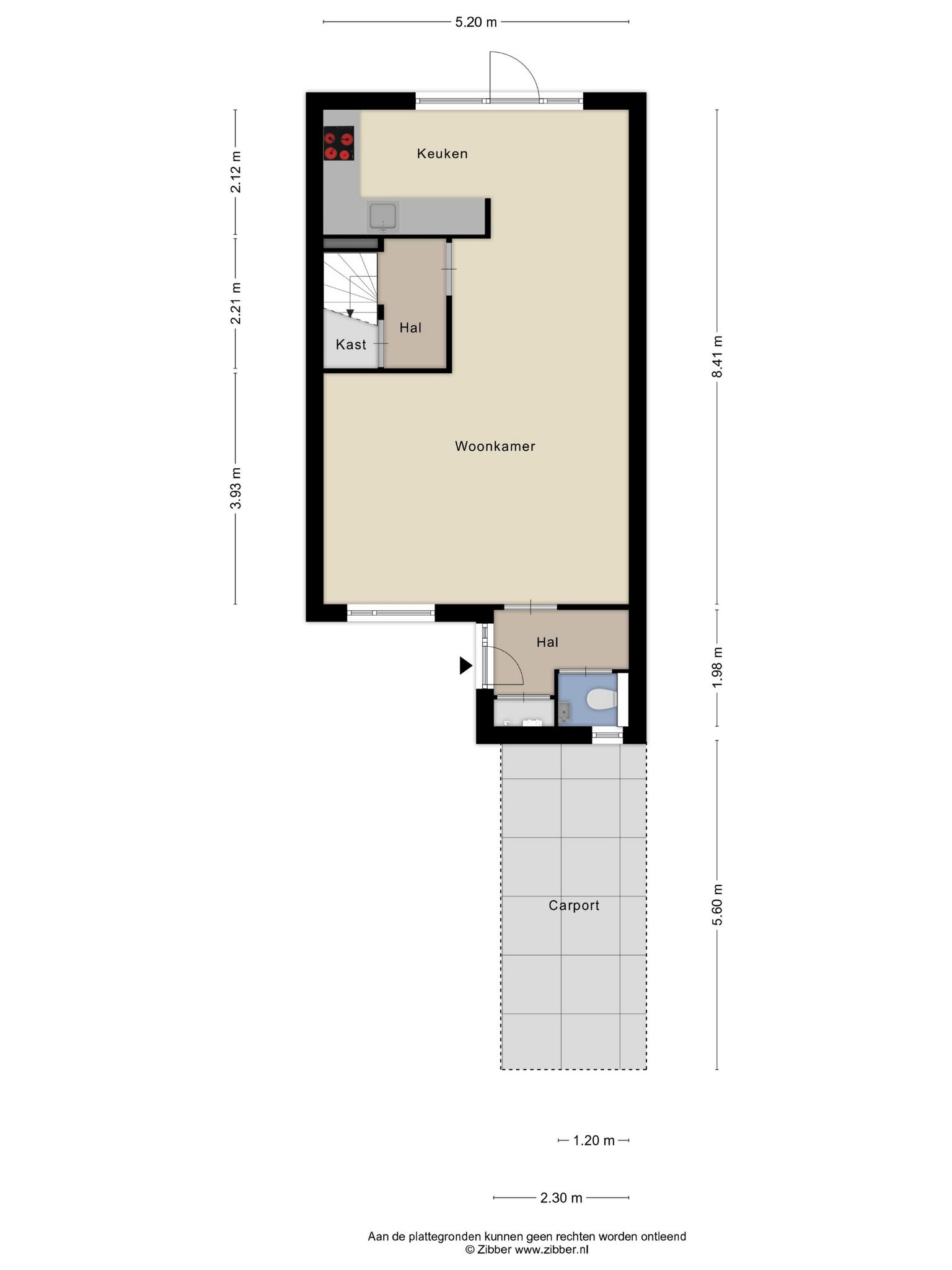 De hal/entree biedt toegang tot de ruime woonkamer, het toilet met fontein, de meterkast en trapopgang naar de eerste verdieping. De woonkamer is ca. 25 m2 groot en voorzien van een trapkast en een open inbouwkeuken met diverse apparatuur.