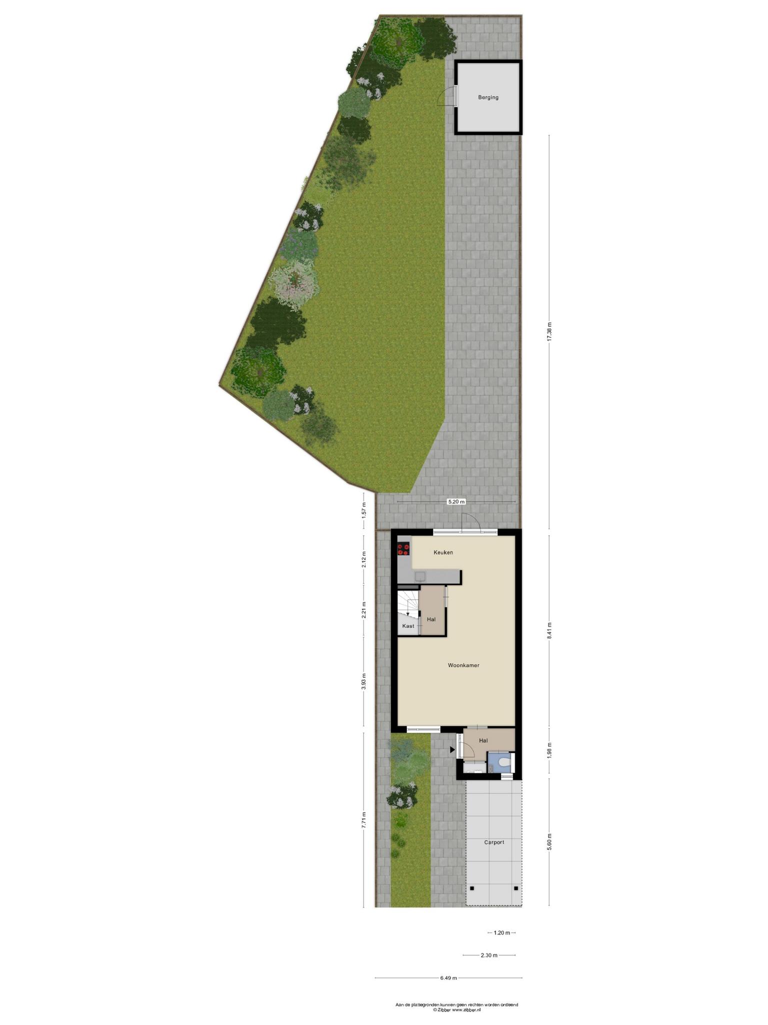 De voortuin is netjes ingericht en voorzien van een oprit met carport.