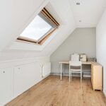 De zolder beschikt over een royale voorzolder met aansluitingen voor wasapparatuur, de CV-combiketel en volop bergruimte achter knieschotten en op de bergvliering. Daarnaast zijn er twee ruime slaapkamers met Velux dakramen, laminaatvloeren en airconditioning.