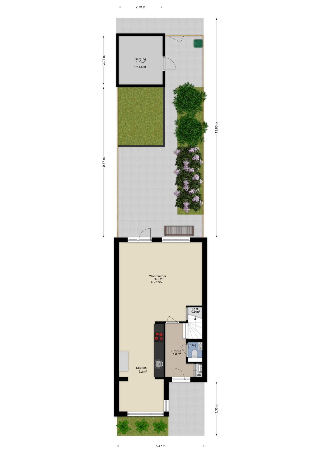 - Royale achtertuin op het oosten;