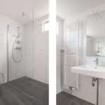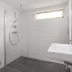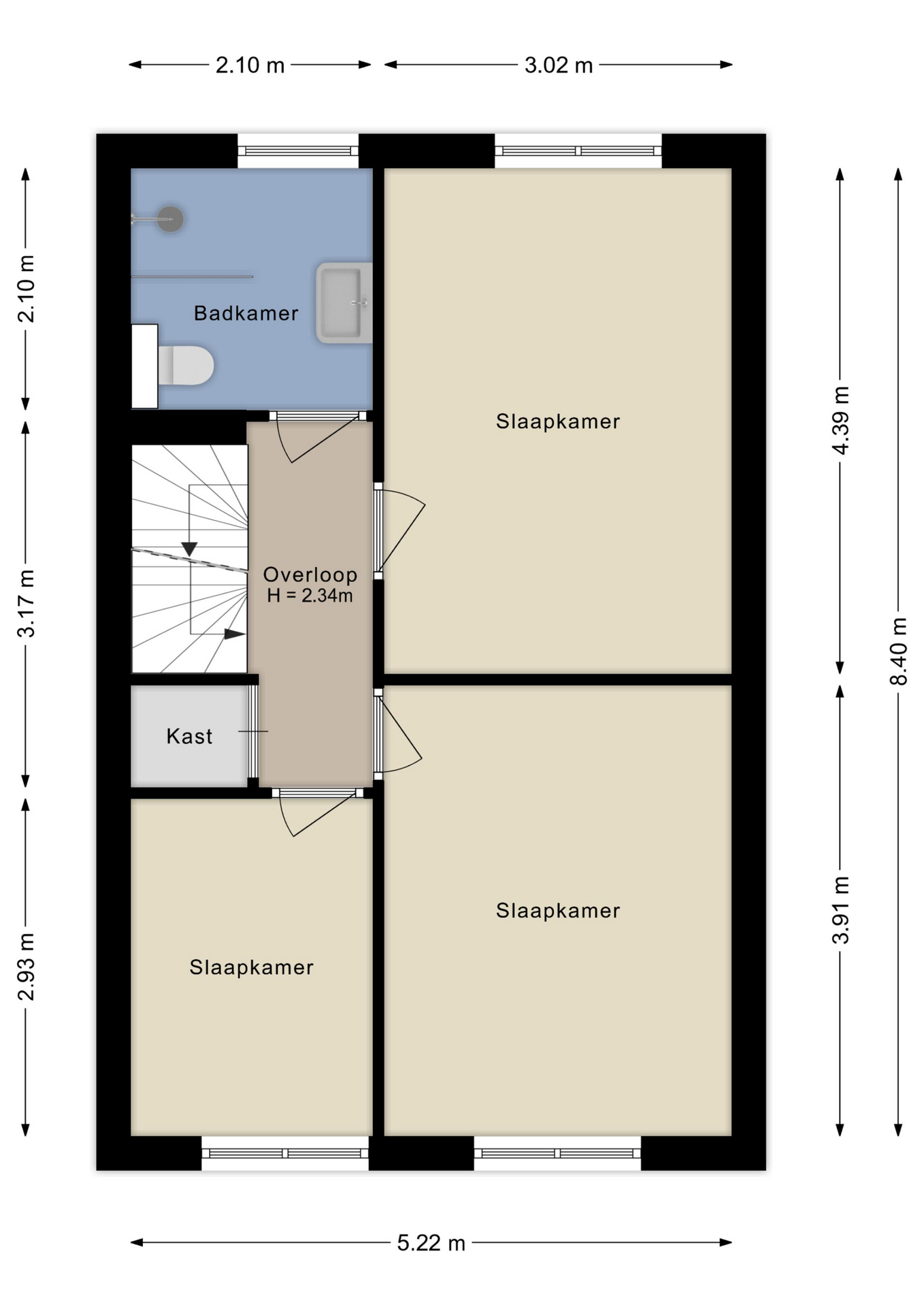 De overloop biedt toegang tot een drietal goed bemeten slaapkamers, alsmede de nette badkamer met douche, toilet en wastafel.