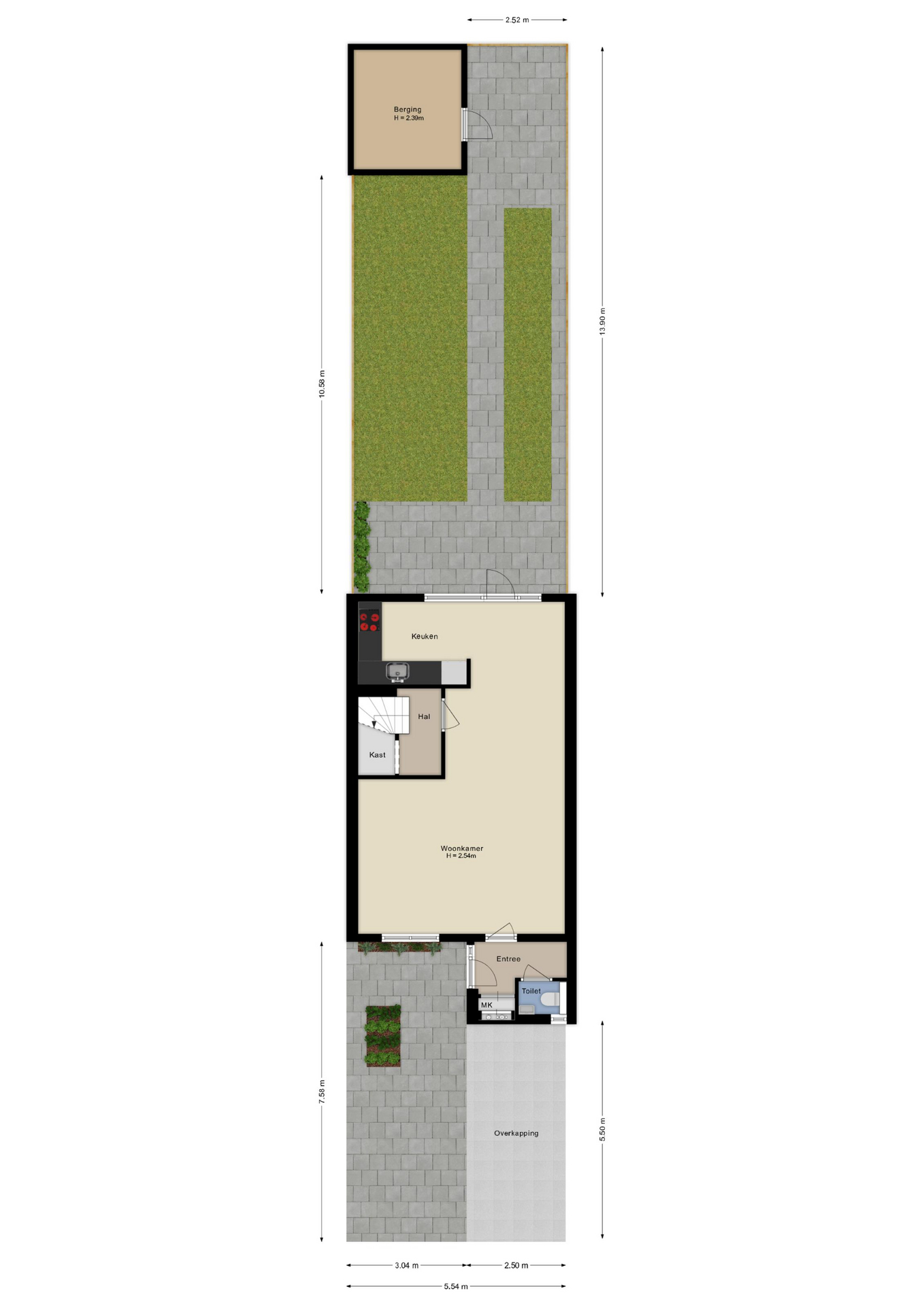 Via de woonkamer is eveneens de royale achtertuin op het oosten, met stenen berging en achterom te bereiken.