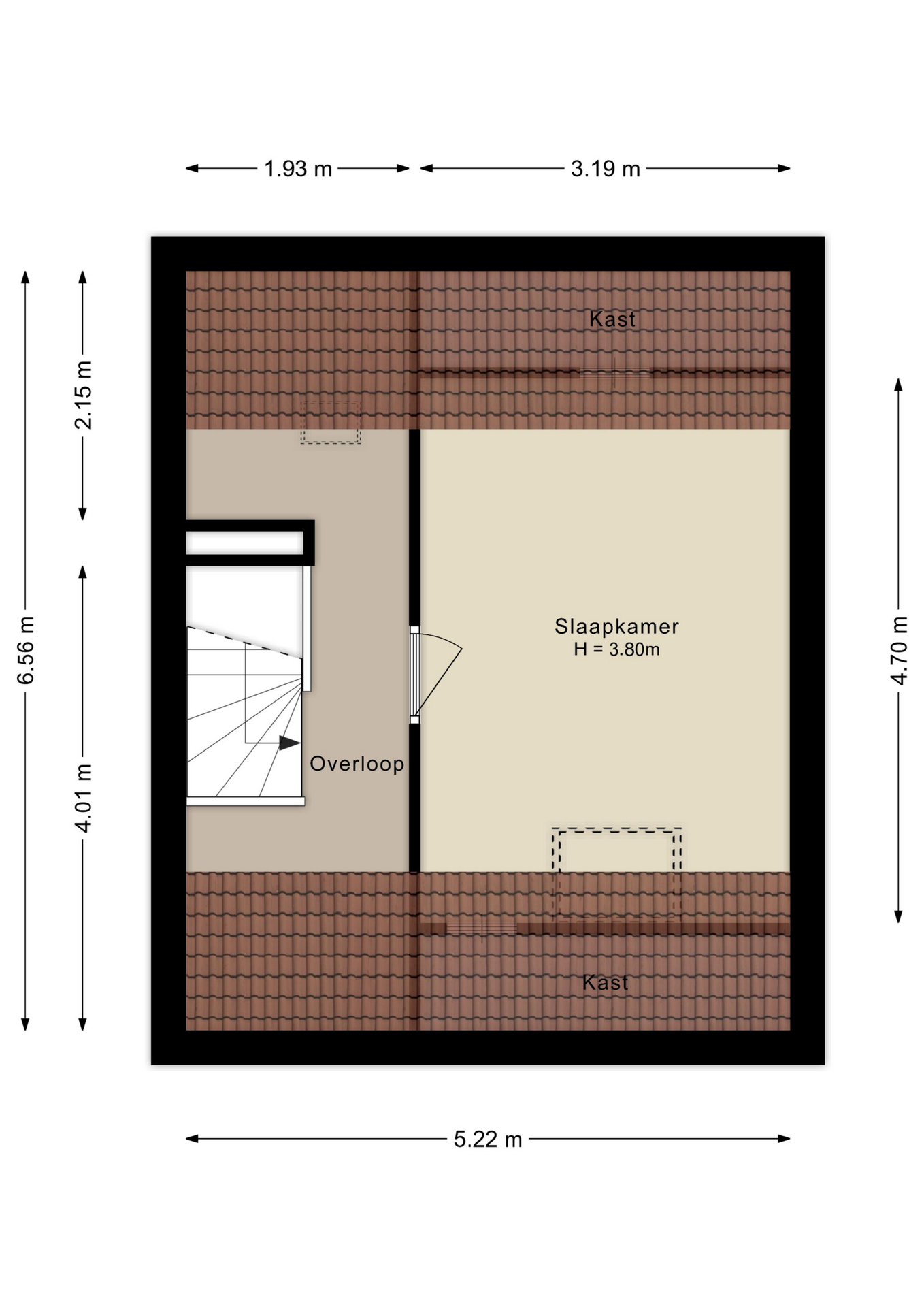 Via de overloop met wasmachine-aansluiting is de vierde slaapkamer te bereiken. Deze verdieping beschikt tevens over diverse knieschotten.