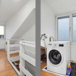 De tweede verdieping is door de opbouw opvallend ruim en licht. Hier bevinden zich nog twee slaapkamers, ideaal als kinder-, werk- of logeerkamer. Daarnaast is er een aparte ruimte met de cv-ketel en de wasmachine-opstelling. Via een vlizotrap is de ruime vliering bereikbaar, die zorgt voor veel extra bergruimte.