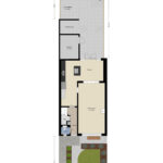 Je betreedt de woning via de hal met meterkast, modern zwevend toilet met fontein en een praktische bergkast onder de trap. Via…