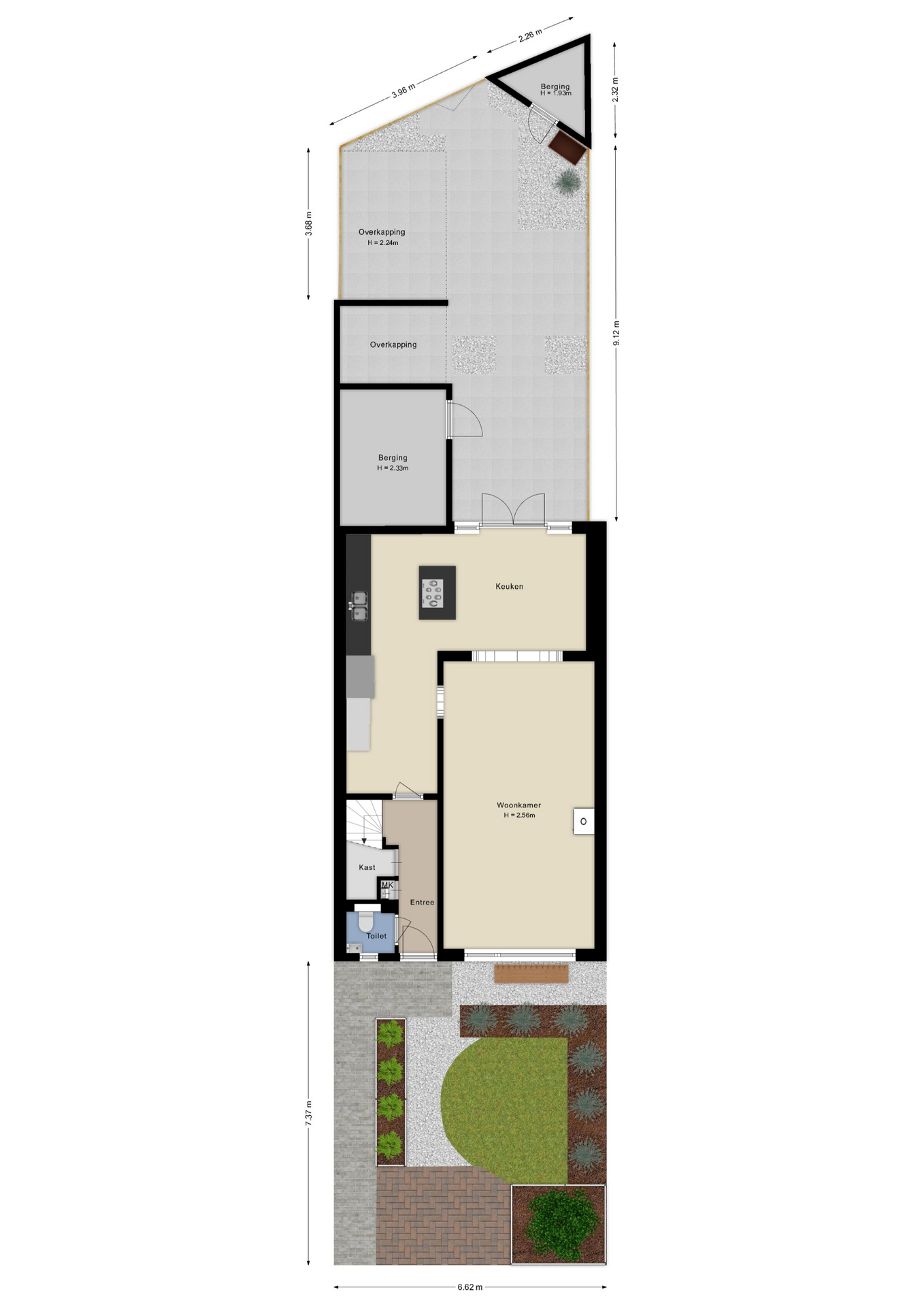 De achtertuin ligt gunstig op het zuidwesten en is onderhoudsvriendelijk aangelegd. Er is volop ruimte om te ontspannen, te spelen of tot in de avond van de zon te genieten. In de tuin staan een aangebouwde stenen berging met elektra en een houten berging, ideaal voor fietsen, gereedschap of hobby’s. Daarnaast is er een gezellige overkapping, een perfecte plek om buiten te zitten, te borrelen of een warme zomerdag in de schaduw door te brengen.