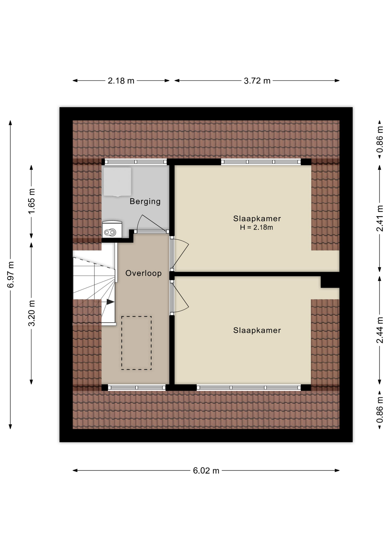 - Dakopbouw, geheel van kunststof, inclusief vliering en v.v. dakisolatie