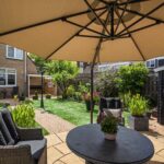 - Een royale en diepe achtertuin, waar je dankzij de ruime opzet altijd een plekje in de zon kunt vinden.