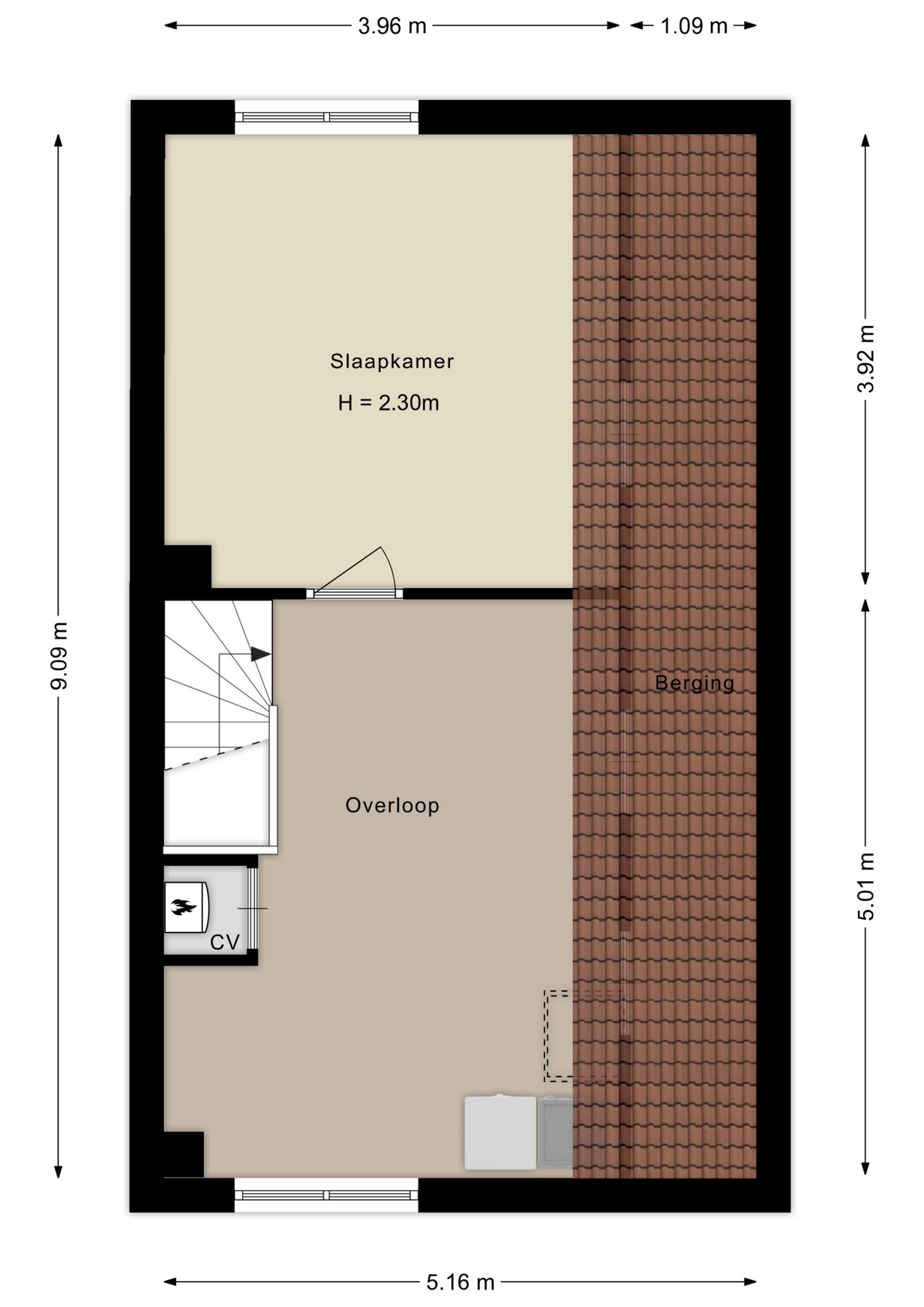 Een vaste trap brengt je naar de tweede verdieping, waar zich een royale open ruimte bevindt met wasmachine-aansluiting en boiler, alsmede de vierde ruime slaapkamer. Tevens is het mogelijk om op de open ruimte een 5e slaapkamer te creëren.