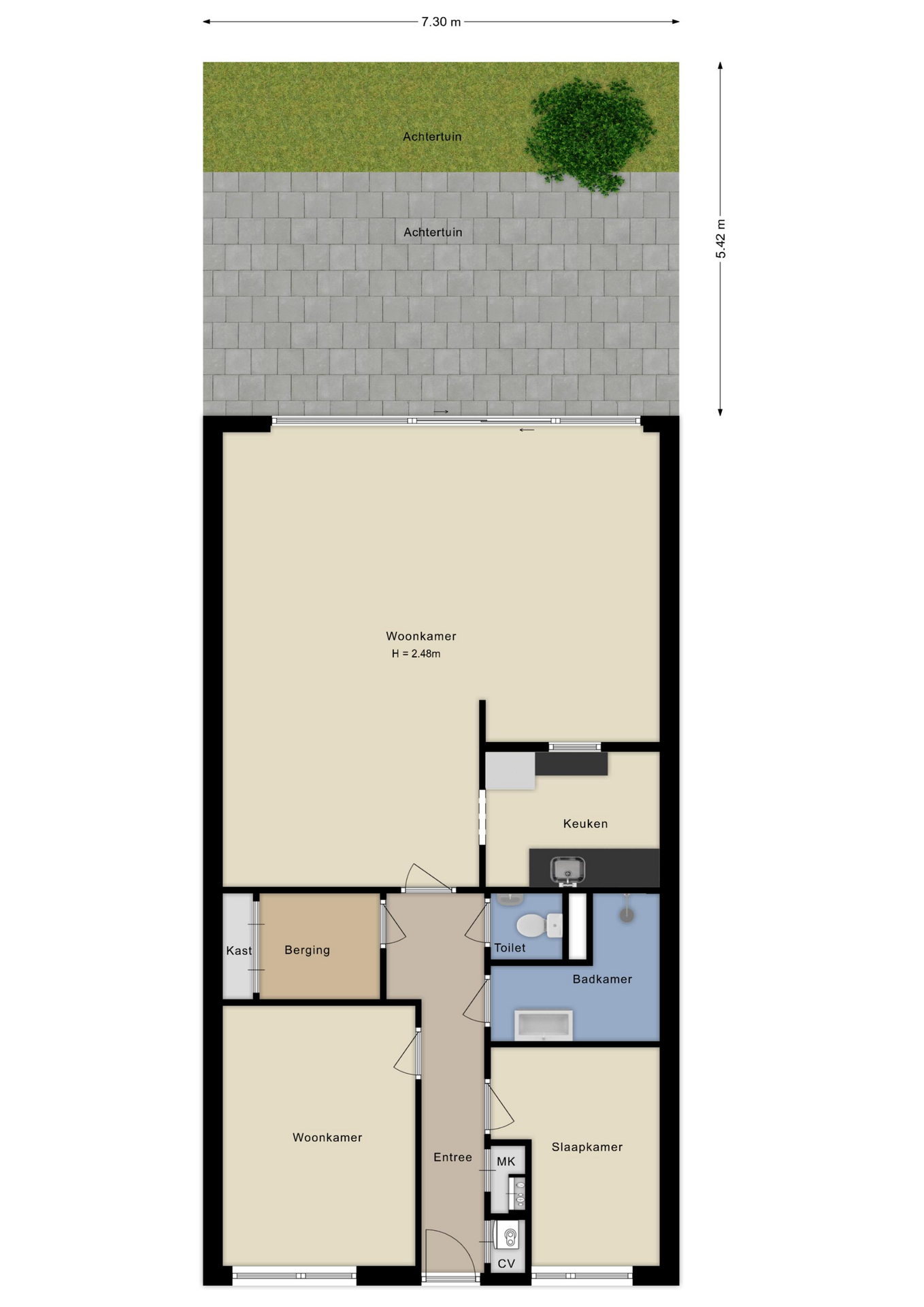 De woning bevindt zich op de begane grond en is eenvoudig te bereiken.