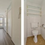 Entree, hal met toegang tot 2 slaapkamers, berging. Separaat toilet. Badkamer met wastafel, douche en aansluiting voor het witgoed.