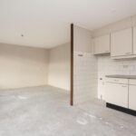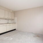 De lichte en brede woonkamer met keukenblok geeft toegang tot een ruim terras van circa 14 m2. Op de begane grond van het complex is nog een separate fietsenberging aanwezig.